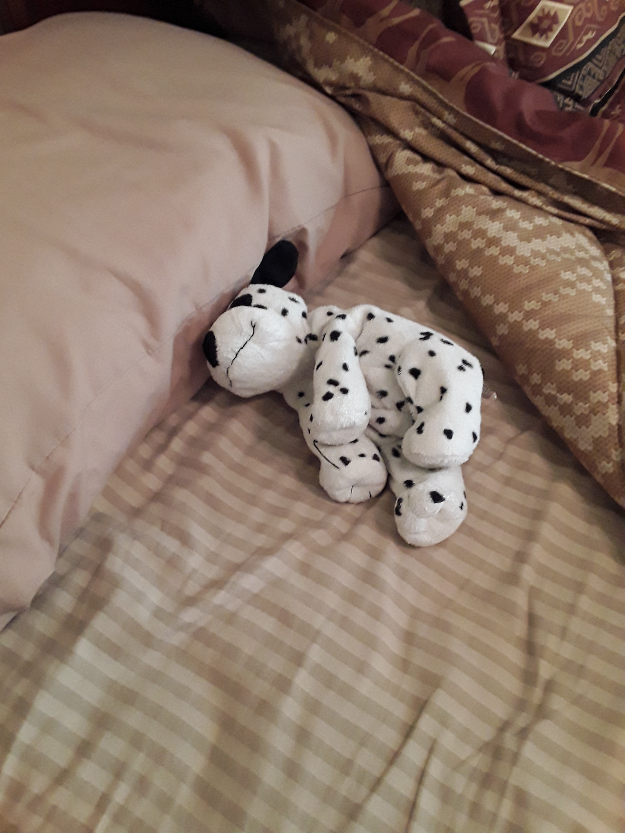 My husband and I had the pleasure of spending part of yesterday with our granddaughter as she spent the night with us. Food, Wii bowling, TV, and visiting occupied our time. When I went to turn down her bed in the guest room, there under the comforter was Ruff-Ruff, her stuffed animal that has been with her most of her life. This almost 13-yr-old was thrilled because she had thought the special toy was lost since she hadn’t been able to find it at home. He had been waiting for her to return to the room and bed where she had left him on her last visit.